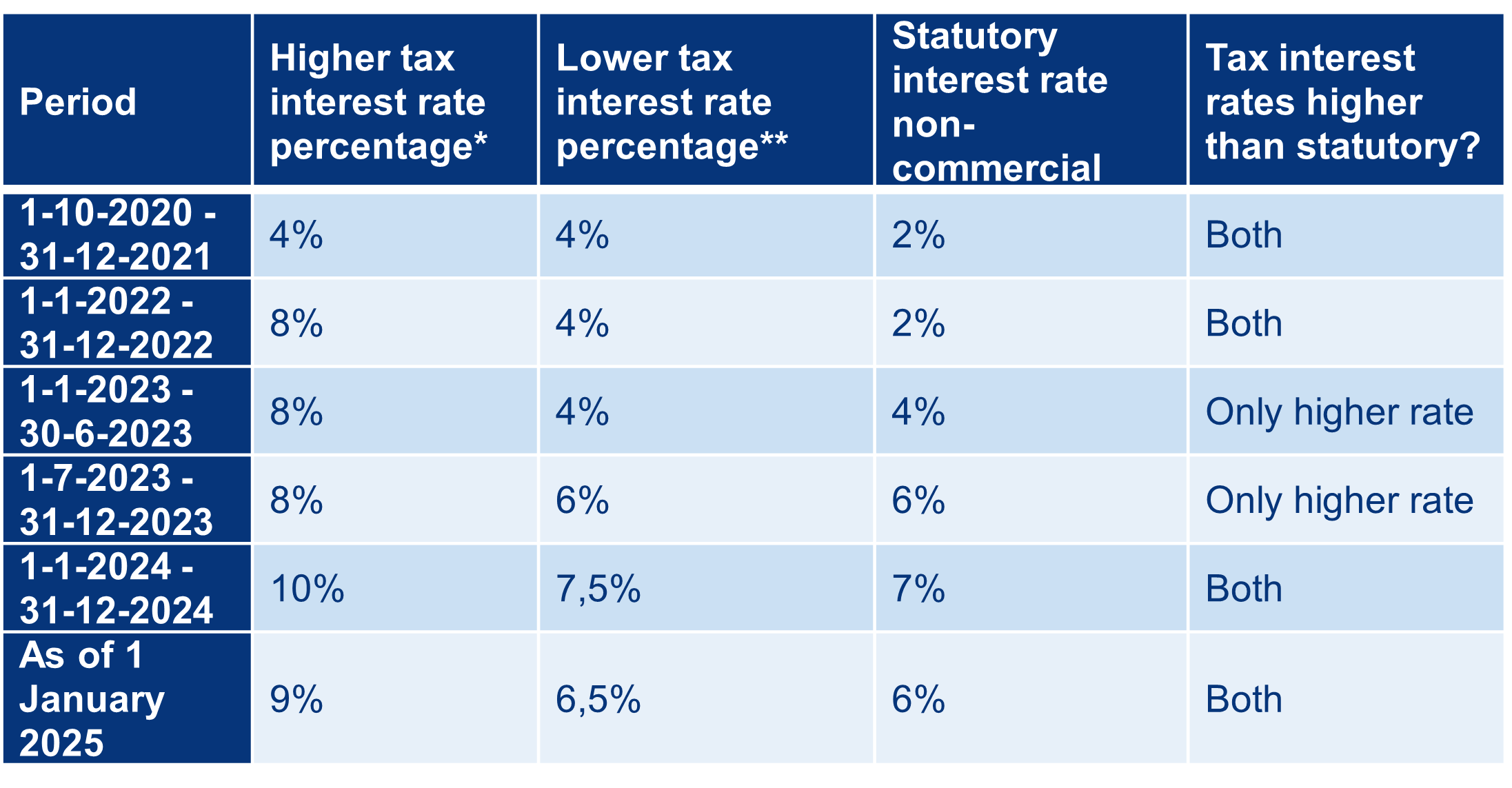 On 26 September 2025, the AG issued an opinion regarding the application of the Dutch tax interest regime. Under this regime, a higher interest rate applies to, inter alia, corporate income tax, while a lower rate applies to other taxes such as personal income tax, dividend withholding tax, wage tax and VAT. An overview of the various rates is included at the end of this post.