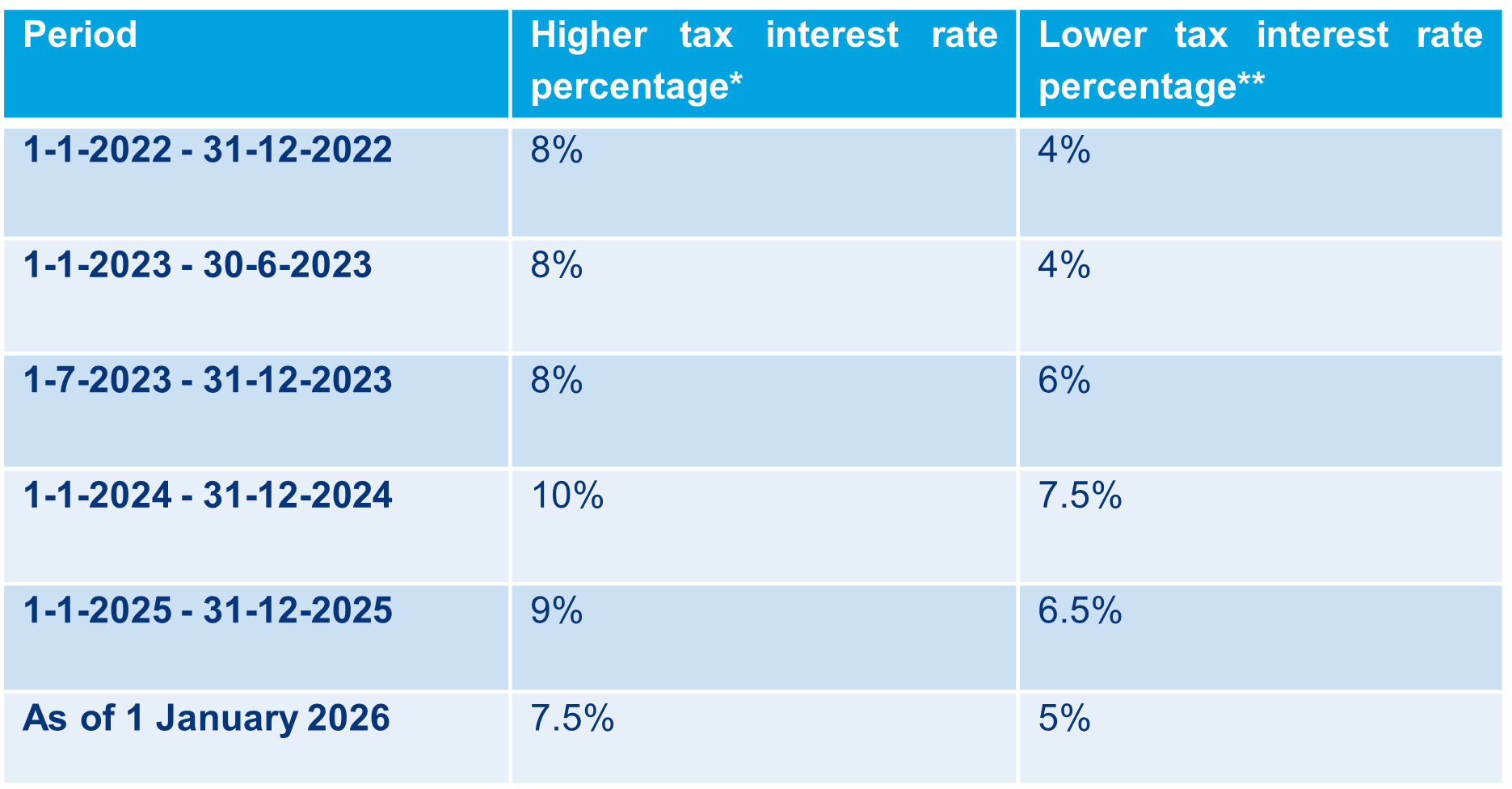 From 1 January 2022, the tax interest rate in corporate income tax (CIT) assessments is higher than in assessments for other taxes (as shown in the overview at the end of this post).